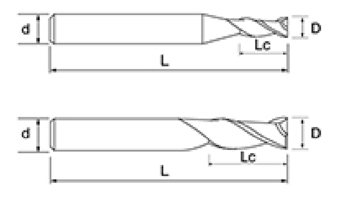 | Nein. | Durchmesser D | Flötenlänge Lc | Gesamtlänge L | Schaftdurchmesser d | Klingenanzahl F |