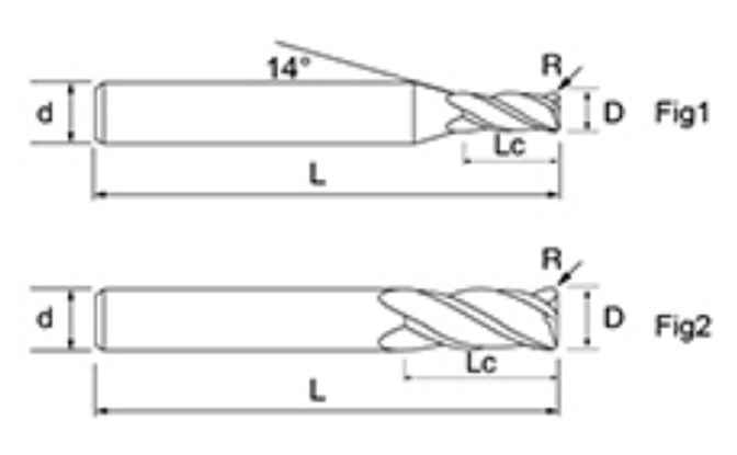 | Nein. | Durchmesser D | R-Winkel R | Flötenlänge Lc | Gesamtlänge L | Schaftdurchmesser d | Klingenanzahl F |